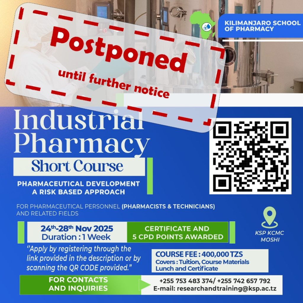 The Kilimanjaro School of Pharmacy (KSP) is hosting a Short Course in Industrial Pharmacy designed to enhance the knowledge and practical competencies of pharmaceutical personnel and professionals in related fields. This program focuses on a comprehensive understanding of Good Manufacturing Practices (GMP) and their practical application in pharmaceutical production.